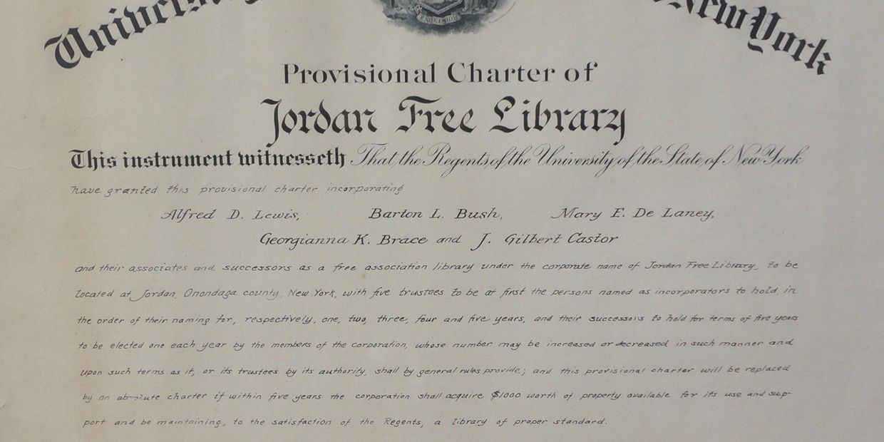 In 1972, when the newly renovated car dealership was ready, the library moved from the Village Hall. Upon the move, the Jordan Free Library was renamed the Jessica Bramley Free Library. Today it is known as the Jordan Bramley Library.